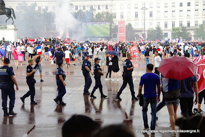 Auvergnate, pour vivre ce grand moment dans notre capitale régionale : Lyon.Dès le début du match l'orage s'est invité à la fête, malgré les trombes d'eau et les éclairs, les spectateurs sont resté, inventant des abris de fortune.